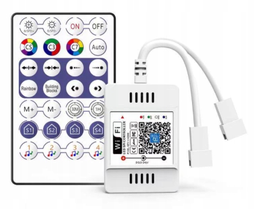Функції контролера: зміна кольору, вкл/ вимкнення, налаштування яскравості та швидкості освітлення, можливість перемикання режимів, можливість додавання та віднімання кількості пікселів освітлення, можливість зміни порядку RGB, таймер