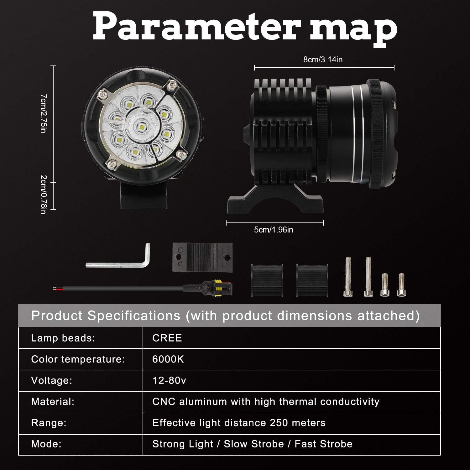 Розумне світлодіодне дальнє світло: ця універсальна оптика, встановлена на опорному кільці, дозволяє використовувати додатковий мотоцикл у фарах для комфорту їзди з відтінком 6000K, вбудований інтелектуальний процесор захищає від втрати струму, якщо мотоцикл не працює, фари не вмикаються, тому немає страху втрати енергії.