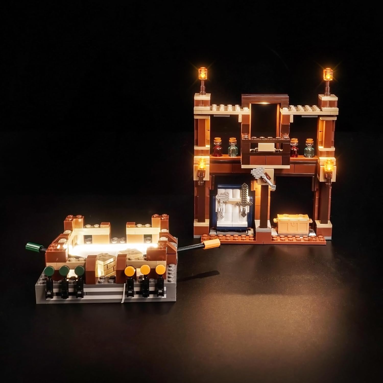 Набір світлодіодних освітлювальних приладів, призначений для самостійного збирання моделей із цегли, сумісний із Woodland Mansion Battle Brick / LEGO 21272. Освітлення підкреслює деталі конструкції та дозволяє виставляти модель після настання темряви — як прикрасу чи елемент колекції.