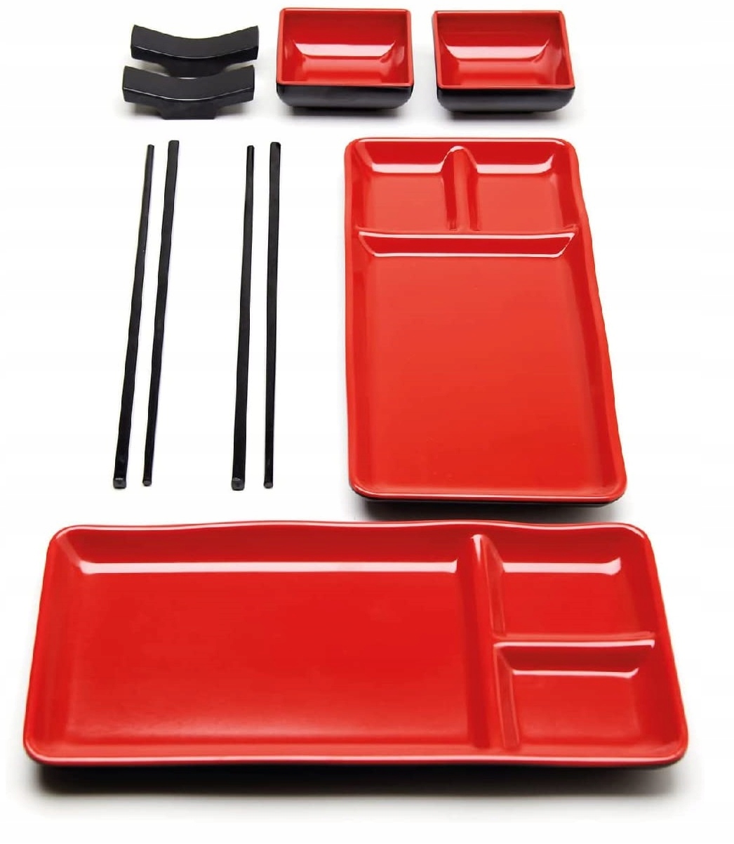 ГОЛІБЕР НАБІР ЯПОНСЬКОГО ПОСУДУ ДЛЯ СУШІ З МЕЛАМІНУ (8 ШТ.) – МІСТИТЬ 2 ЧОРНИХ ПОСУДУ, 2 СОУСНИЦІ, 2 ПАЛИЧКИ ТА 2 ПОЛИЧКИ ДЛЯ ПАЛИЧОК – НАБІР АЗІЙСЬКОГО ПОСУДУ (ЧЕРВОНОГО)