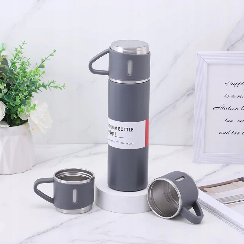 НАБІР ТЕРМОС З ЧАШКОЮ 500мл + 3 СТАЛЕВИХ ГРУЖКИ ПОДАРУНОК ДІДУ МОРОЗУ