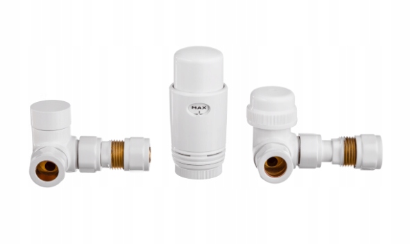 Набір для підключення радіатора ванної кімнати в установці мідь або PEX; вліво або вправо. Щоб поміняти сторони осі (зліва направо), відкрутіть вставку від зворотного та подаючого клапанів, поміняйте сторони та вкрутіть її в корпуси.