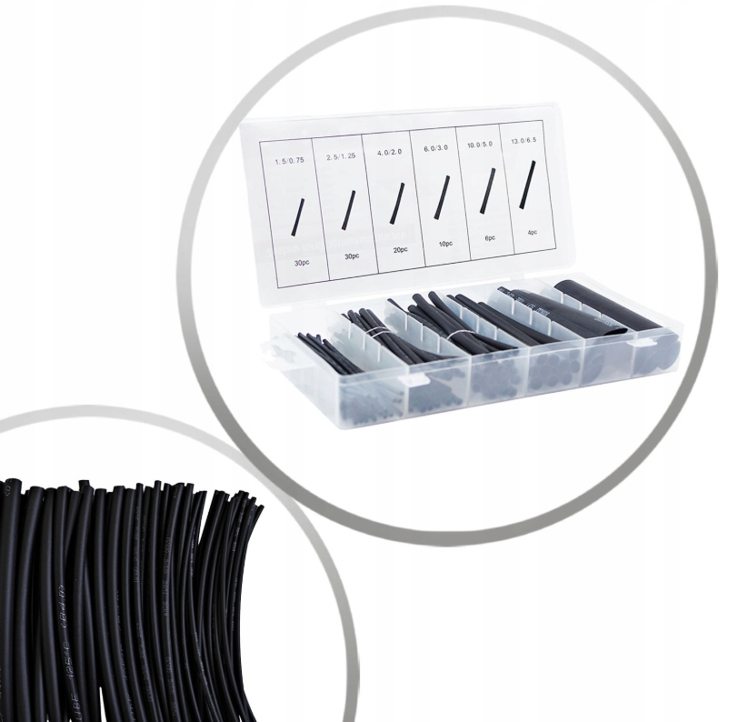 НАБІР ТЕРМОУСАДНИХ ТРУБ ІЗОЛЯЦІЙНИХ ВЗУТТІВ ЧОРНИЙ ПВХ 196 шт.