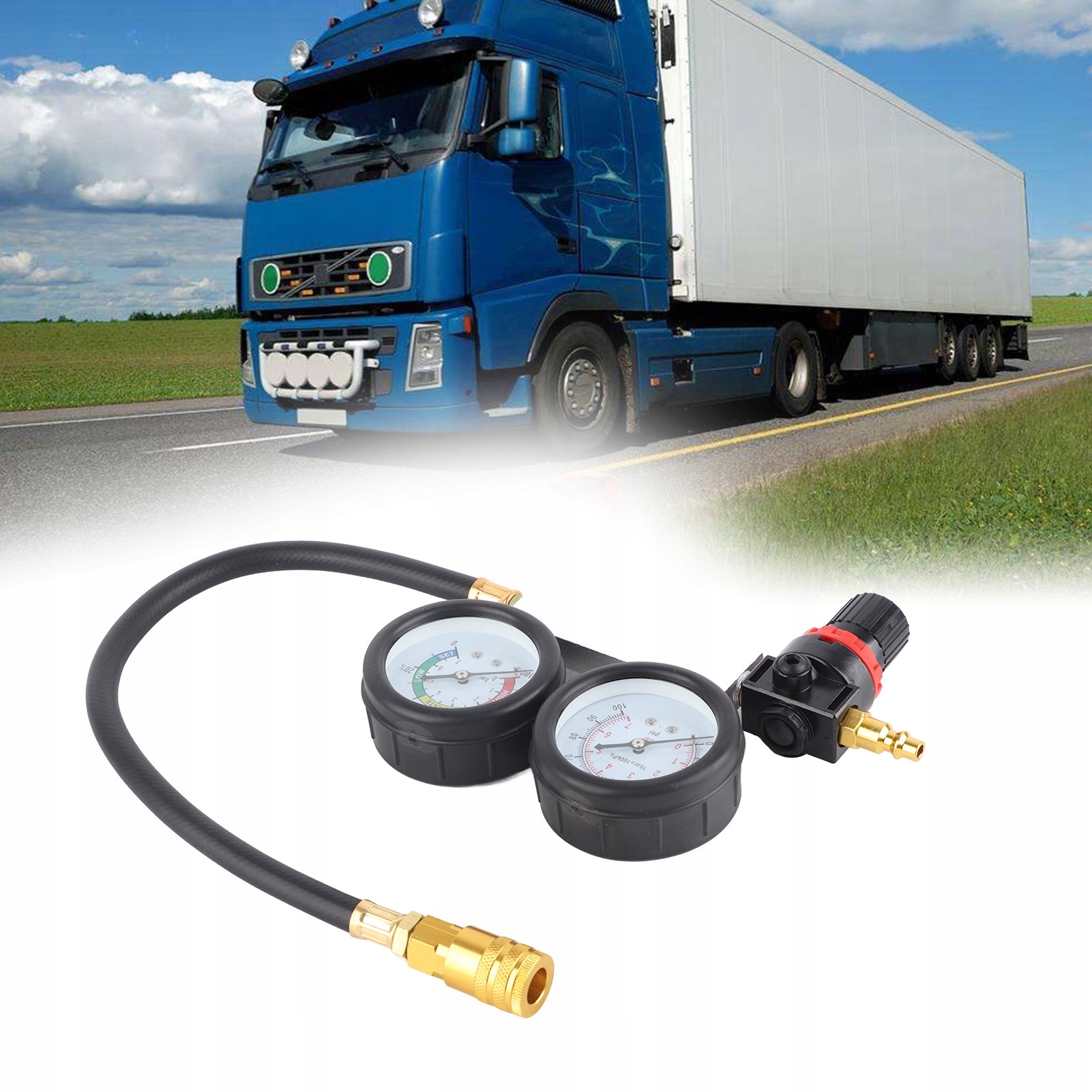 Це високоякісний детектор циліндрів TU-21, включаючи шматочок подвійного лічильника, вхідний тиск 2-1/2 ", оснащені швидкі чоловіки, шкала лічильника 0-100si, адаптери клубу 10.