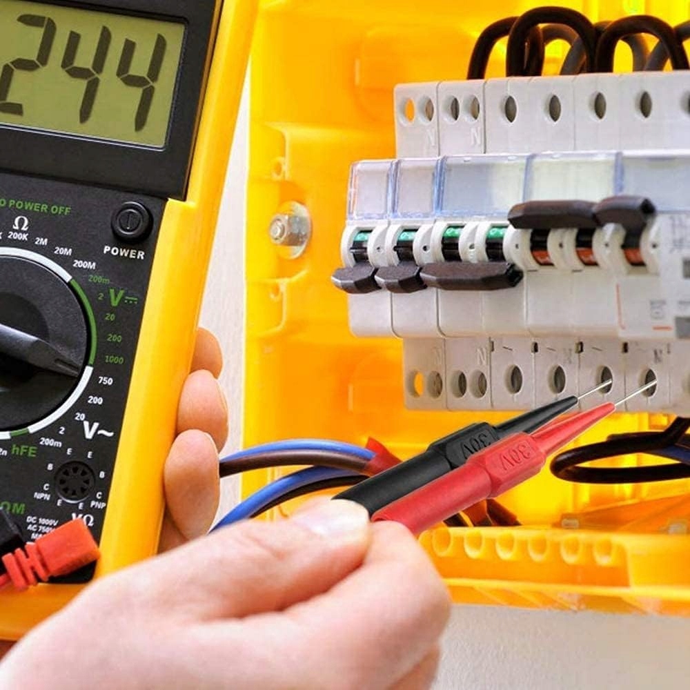 Пакет включає: Ви отримаєте 5 ізольованих зондів проколу червоного, зеленого, чорного, синього та жовтого кольору та 15 зондів товщиною 0,7 мм синього, червоного, чорного, зеленого та жовтого кольорів; Для повсякденного використання достатньо 20 різьбових зондів.