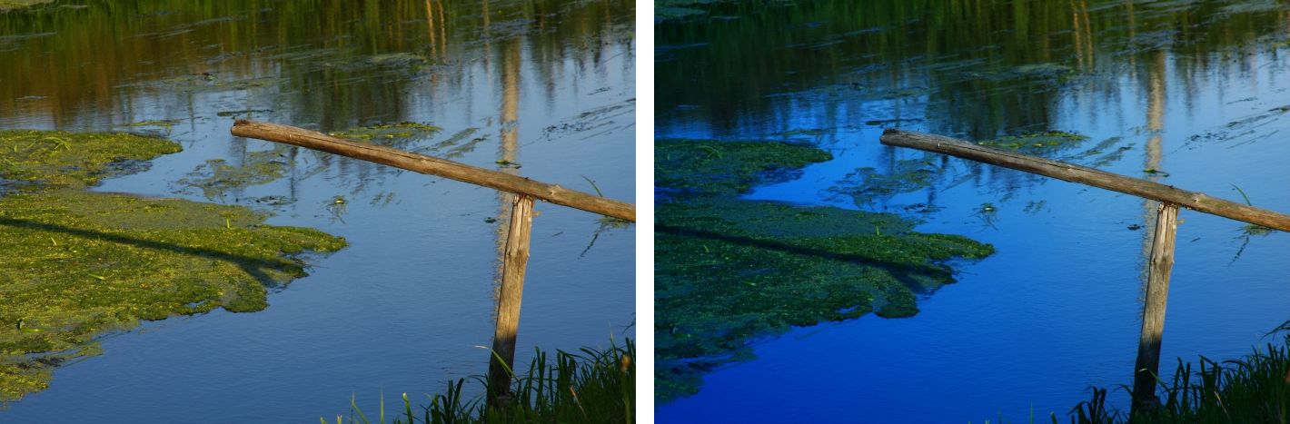 Напівнюхальний фільтр також запобігає пересвітленню , у сонячні дні ми позбавляємося від яскравого, навіть білого неба, замінюючи його красивим кольором темно-помаранчевого, що переходить у коричневий.