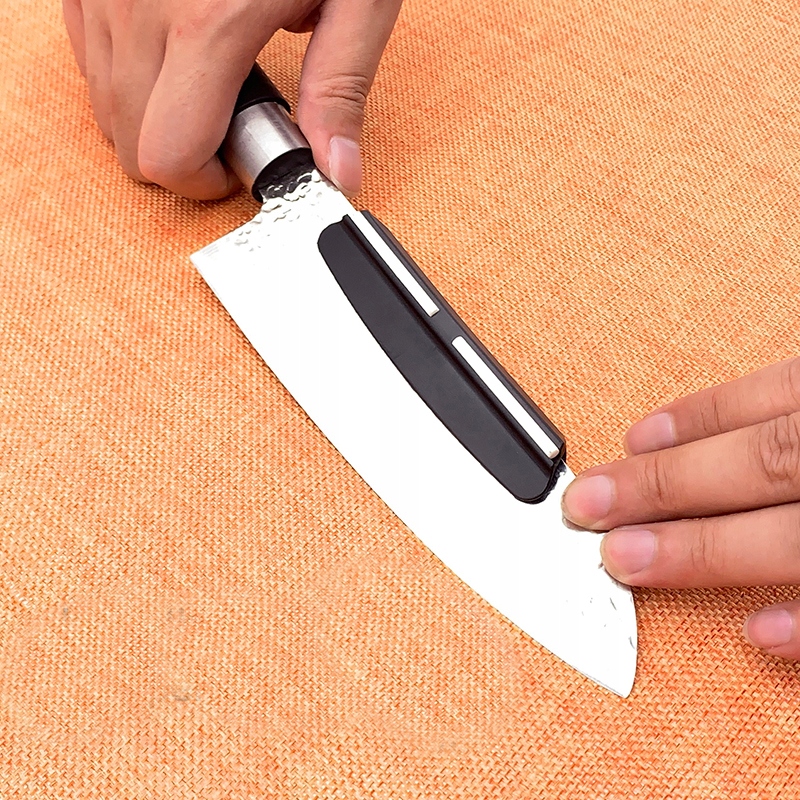 Представляємо вашій увазі фірмовий набір для заточування, що складається з точильного каменю, антиковзаючої основи та направляючої для ножа.