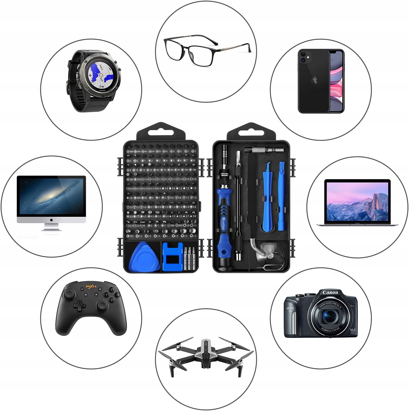 ✅Набір магнітних викруток 122 в 1 - набір магнітних викруток містить 101 різну біту. У комплект також входить тримач драйвера, подовжувач, пінцет, пластикові інструменти для важеля, інструменти для відкривання, намагнічування, магнітна накладка, присоска, інструмент для виймання SIM-карти. Його можна використовувати для ремонту різних побутових приладів.