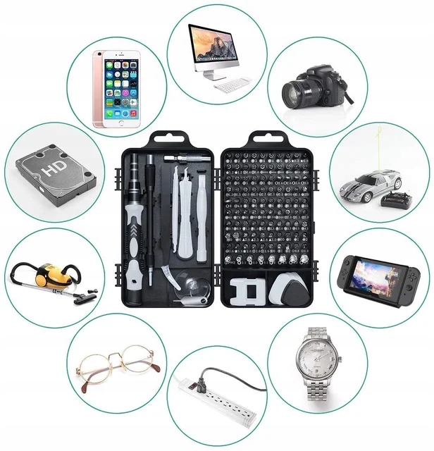 Отримайте цей набір викруток із 115 предметів і насолоджуйтесь професійними інструментами, які полегшать вашу роботу та забезпечать необхідну точність. Незалежно від того, досвідчений ви електронік чи тільки починаєте свою пригоду з ремонту, цей набір незамінний.