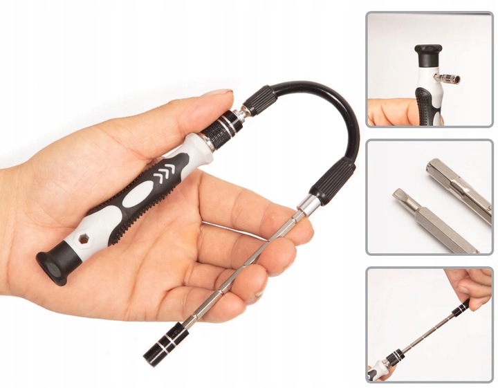 - Гумовий, гнучкий, поворотний подовжувач - дозволяє отримати доступ до гвинтів у важкодоступних місцях ul>