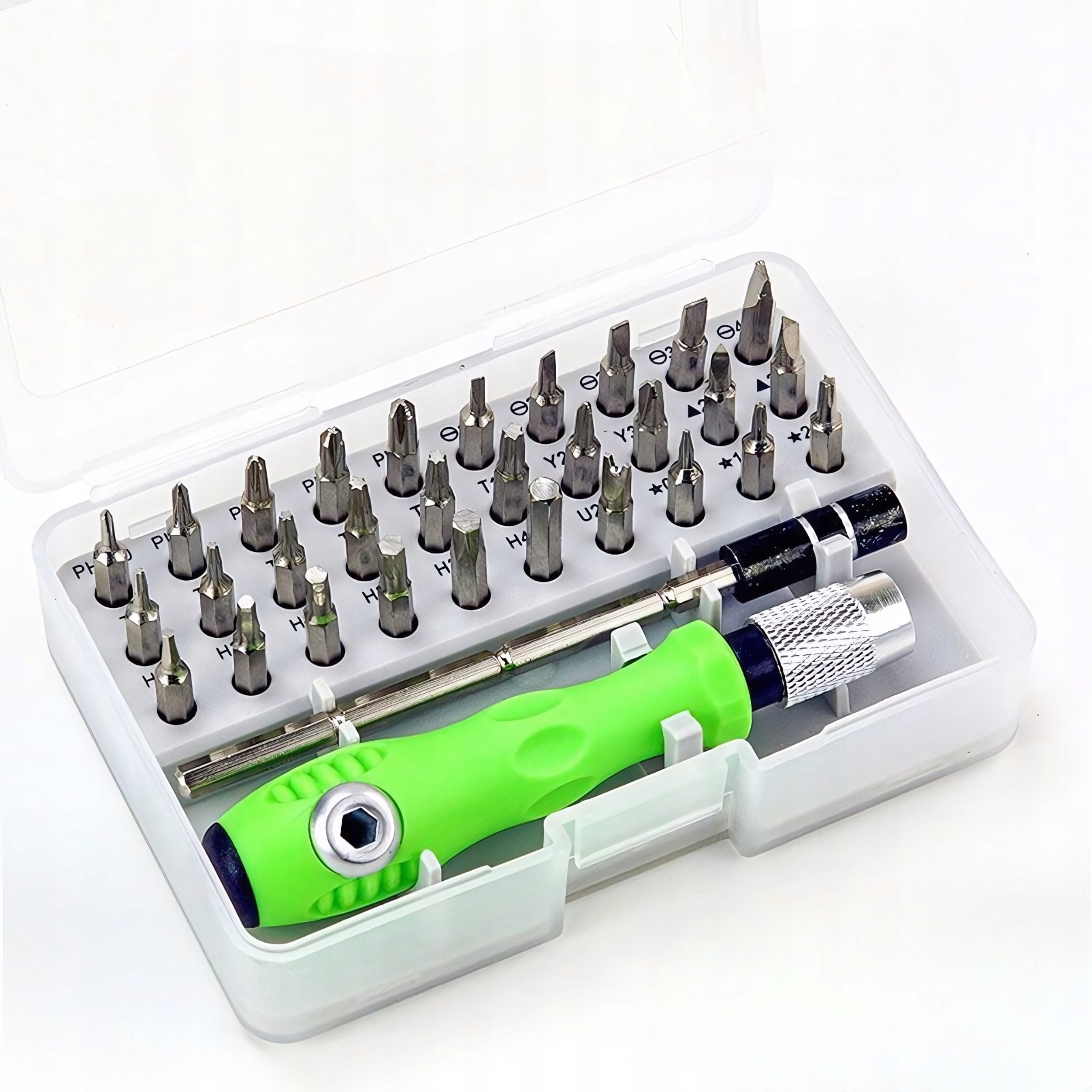 - Цей універсальний набір викруток є ідеальним інструментом для точної роботи як у домашній майстерні, так і в професійному сервісі. Набір містить 32 різні насадки, виготовлені з високоякісної сталі, що забезпечує довговічність і міцність, а також відмінну зносостійкість.Магнітні наконечники полегшують роботу, забезпечуючи надійне утримання гвинтів і елементів кріплення, що значно підвищує зручність використання.