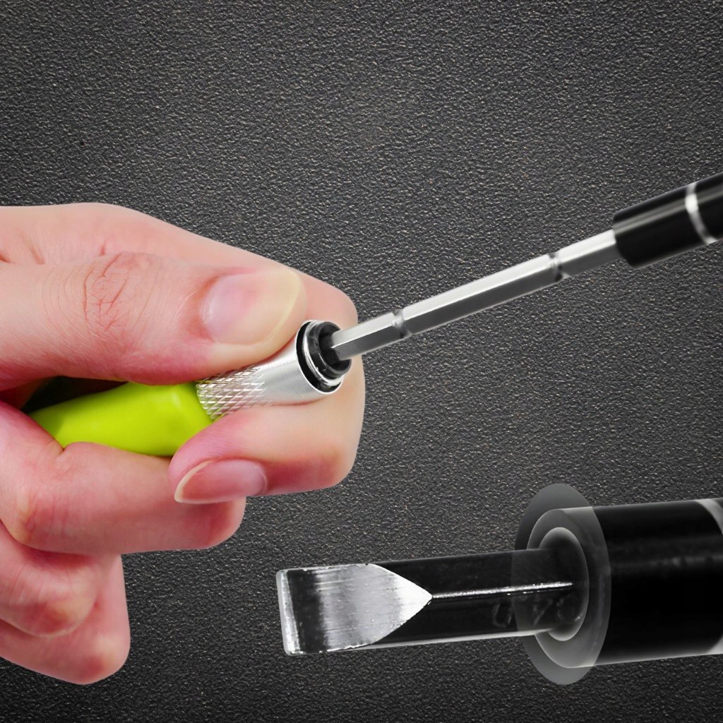 - Магнітні наконечники насадок – надзвичайно практична функція, яка значно полегшує роботу. Завдяки магніту біти надійно утримують шурупи, що запобігає їх випадкове випадання при закручуванні. Це особливо важливо для точної роботи, де ключовими є стабільність і точність. Магнітні наконечники дозволяють швидше й ефективніше закручувати гвинти, що скорочує час, необхідний для виконання завдання. Крім того, магніт полегшує переміщення дрібних елементів, що чудово допомагає у тісних і важкодоступних місцях.