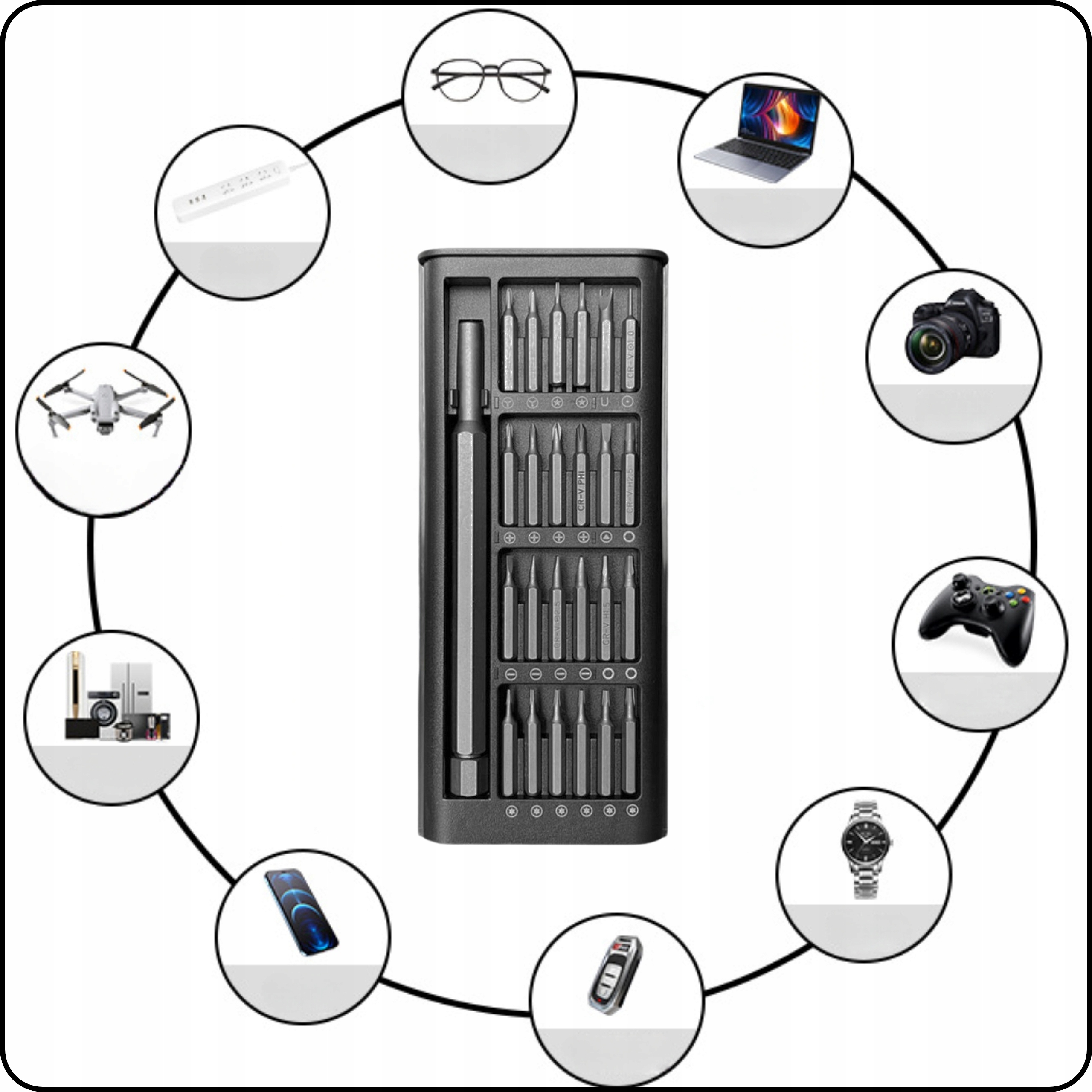 - Вам більше не потрібно турбуватися про те, як відремонтувати чи розібрати свій телефон, планшет, ноутбук або інший електронний пристрій. Просто використовуйте наш набір викруток GSM 25-в-1, який містить усі необхідні насадки та аксесуари.