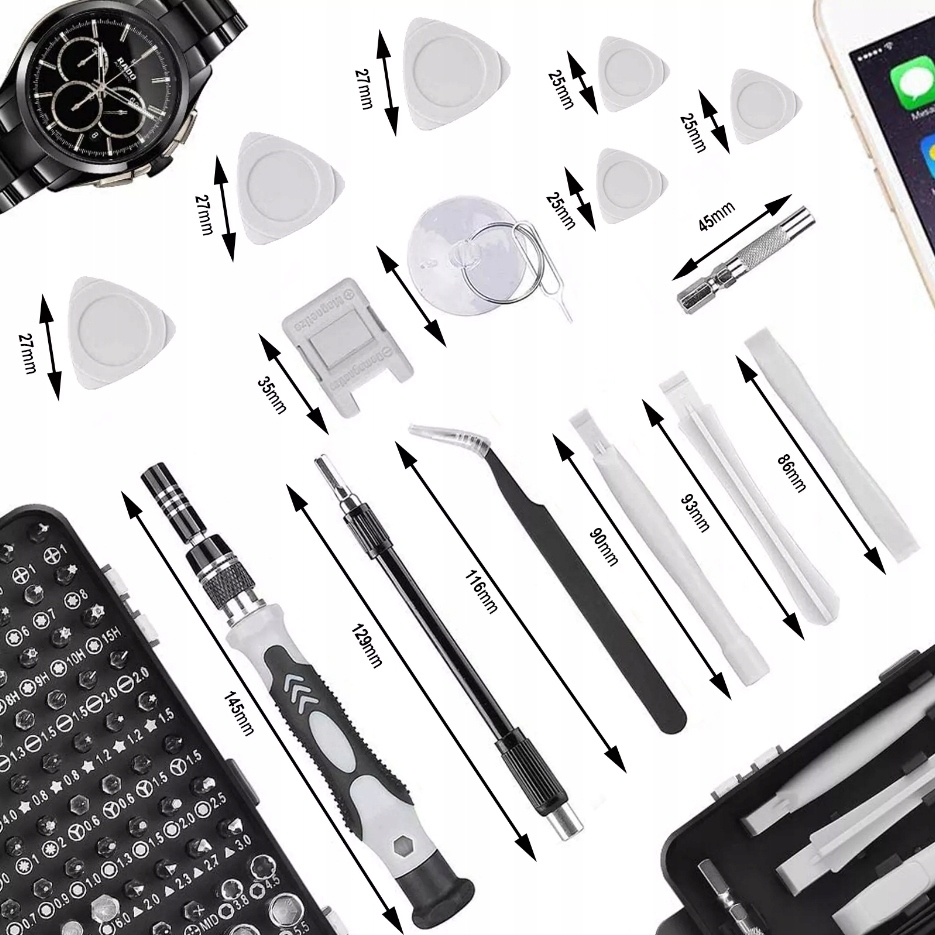 Наш набір містить усе необхідне для ремонту та обслуговування електроніки. Зручний профільований тримач дозволяє комфортно та стабільно встановити та використовувати одну з прецизійних насадок.
