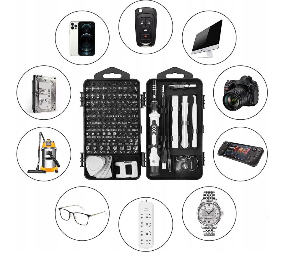 Набір був створений для відкриття телефонів, навігації, камер, ноутбуків та всього іншого обладнання RTV домогосподарств , в яких є нестабільні гвинти. Хлопець!