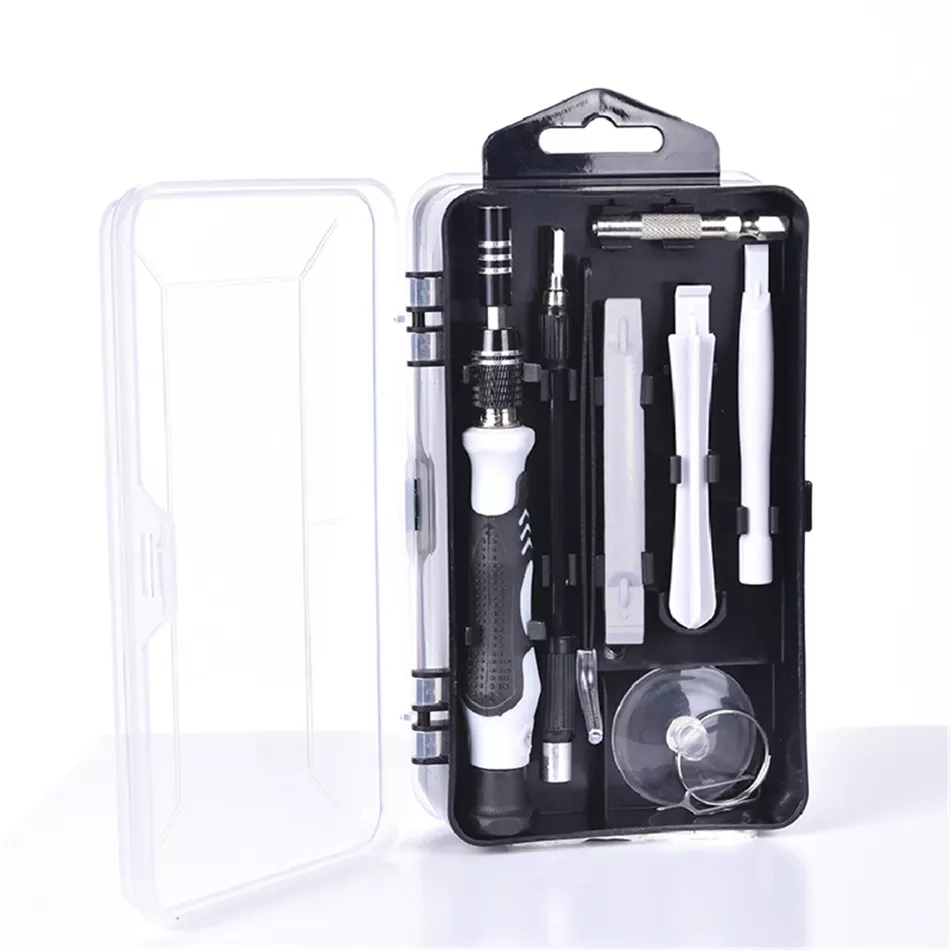 Набір складається з двостулкової коробки. Перша сторона містить набір пластикових відкривачок різних форм і розмірів, ручку (ручку) з 3 подовжувачами, щипці та інші аксесуари. Інша сторона — це набір із 103 магнітних наконечників із довгими шийками зі сталі + трикутні відкривачки, магнетизер.