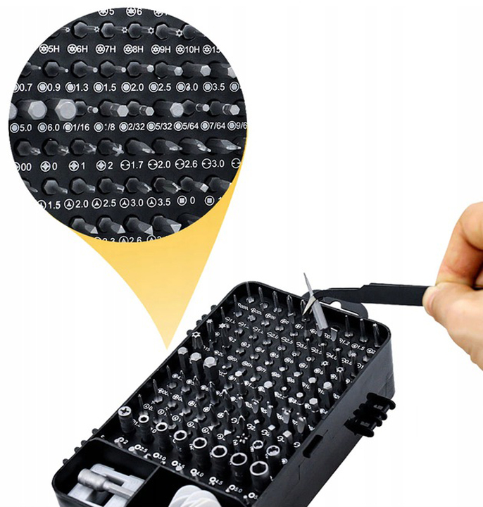 Набір призначений для відкриття телефонів, планшетів, навігацій, фотоапаратів, ноутбуків та всієї іншої побутової техніки, яка містить нестандартні гвинти.