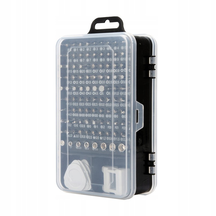Весь набір упаковано в невелику двосторонню коробку з прозорою кришкою b> що полегшує зберігання та пошук конкретних інструментів.