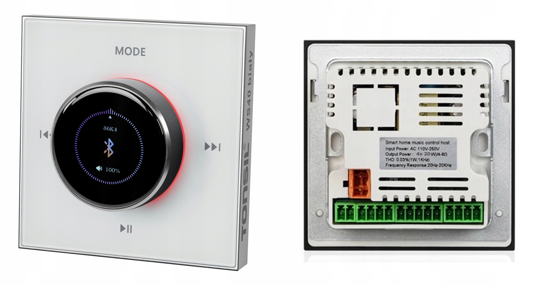 Настінна панель серії WS-40 - це елегантний, компактний програвач з вбудованим підсилювачем (4 × 20 Вт 8 Ом), який монтується в коробку для прихованого монтажу. Стильна передня панель із загартованого скла й алюмінієвої рами ідеально вписується в сучасний інтер’єр.