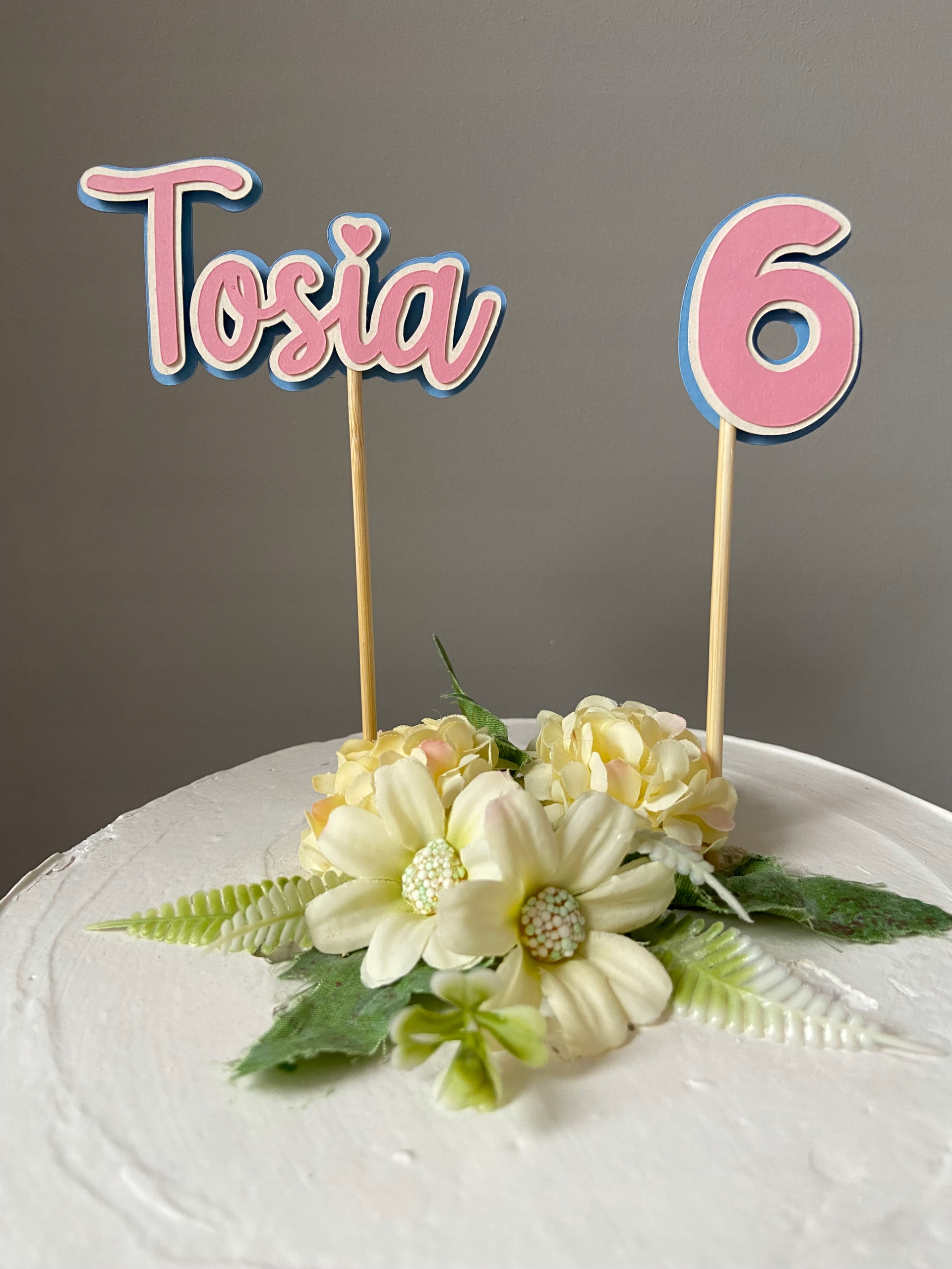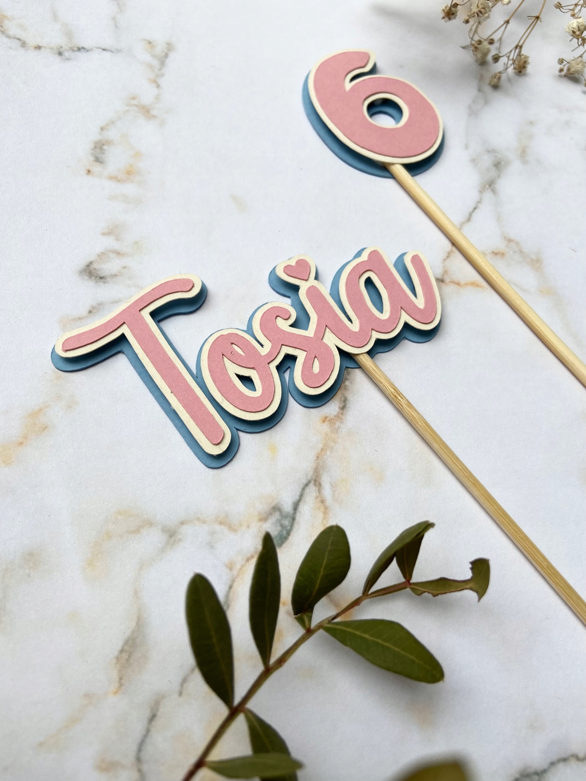 Виготовлений з екологічного паперуперсоналізований набір верхівок для тортів із вашим іменем і номером.