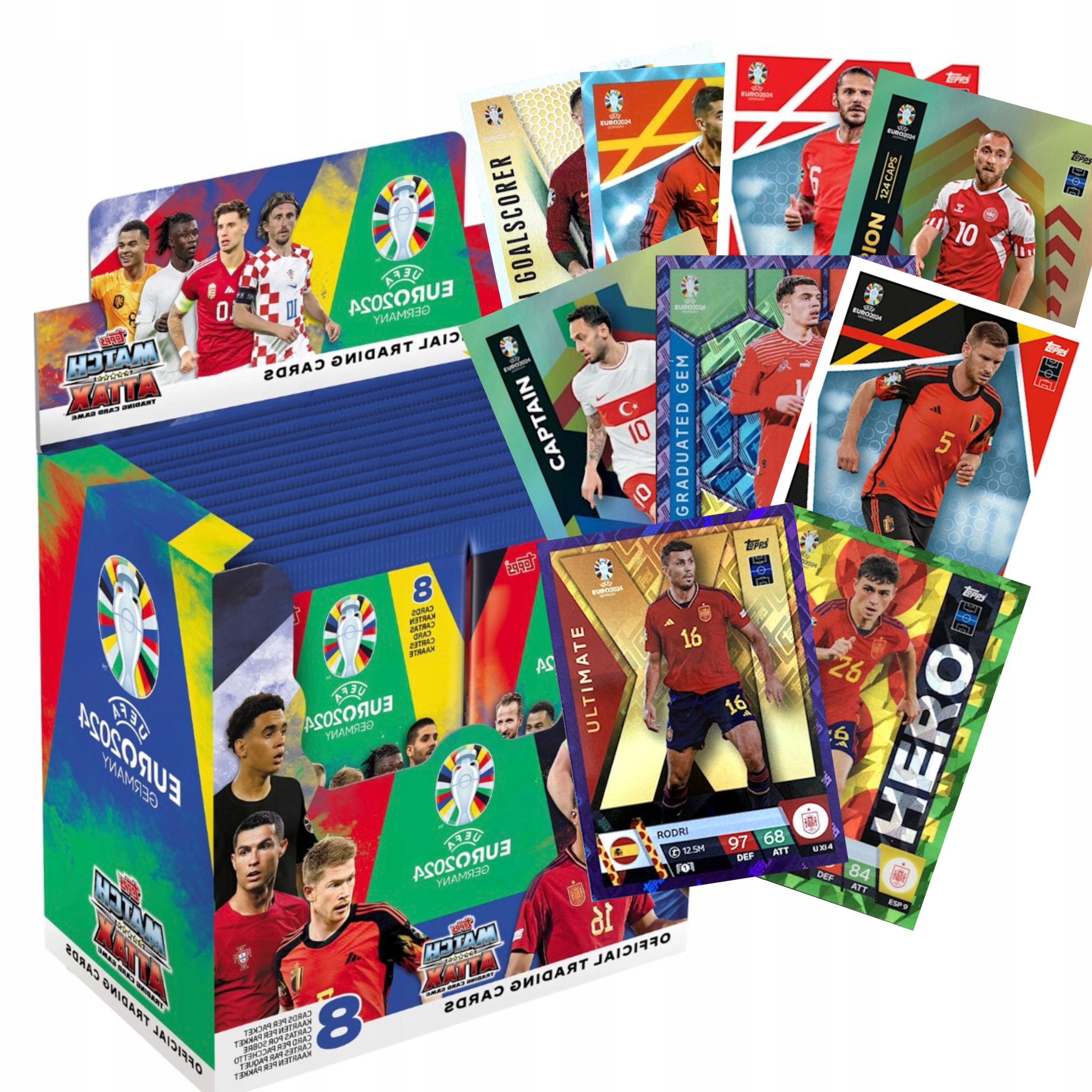 Topps з гордістю представляє першу в історії колекцію Match Attax для ЄВРО 2024. Ця дивовижна нова, насичена діями, колекція містить захоплюючі піднабори та унікальні картки, наповнена всіма кваліфікаційними командами. Є 457 карток для збору в різних категоріях, включаючи Golden Shooter, Centurion, Hero, Ultimate, Graduate Gem, Legends, 100 Club тощо. Зверніть увагу на кришталеві, смарагдові та сапфірові еквіваленти, картки EURO Energy, картки EURO Black Edge, картки EURO Auto та Combo, EURO Chrome Shields і надзвичайно рідкісну картку Career Celebration для Кріштіану Роналду.