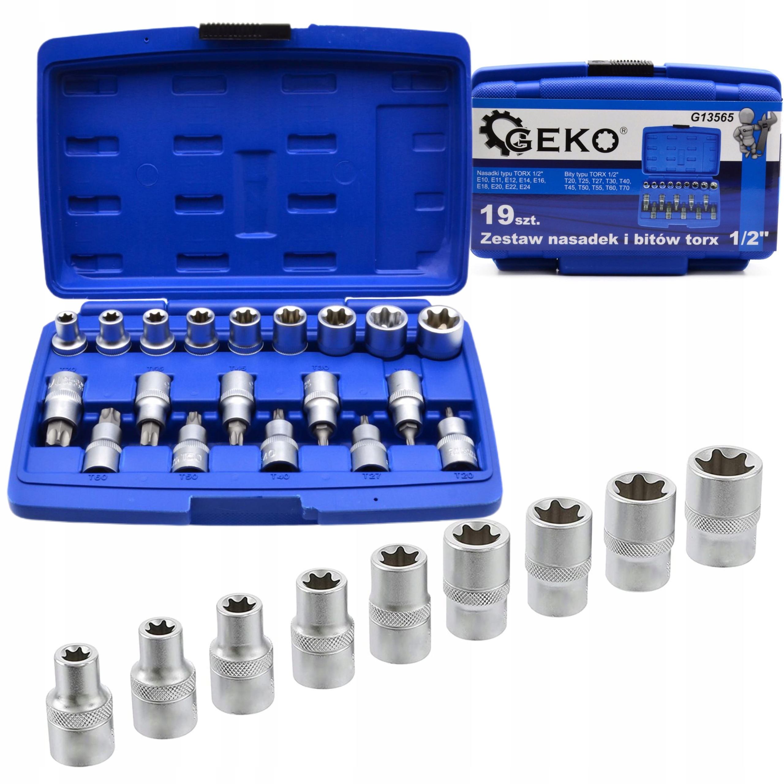 НАБІР ТОРЦЕВИХ КЛЮЧІВ 1/2" TORX ТА БІТ 19 шт