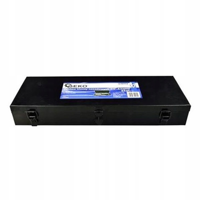 Набір торцевих ключів GEKO, що складається з 21 елемента. У комплект входить набір 6-ти точкових розеток з розеткою 3/4", Т-подібною ручкою (3/4"), тріскачкою (3/4") і набором подовжувачів (3/4"). Всі елементи набору виготовлені з високоякісної хромованадієвої сталі CrV. Все це поміщено в металеву валізу.