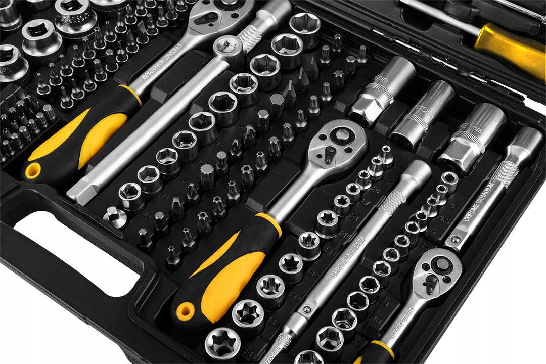 Набір торцевих ключів TOPEX 38D853 — це повний набір інструментів, який добре працюватиме як у професійних майстернях, так і в домашніх гаражах. Він складається з 219 елементів трьох розмірів (1/2", 3/8", 1/4"), що забезпечує універсальне використання в багатьох сервісних, механічних і монтажних роботах.