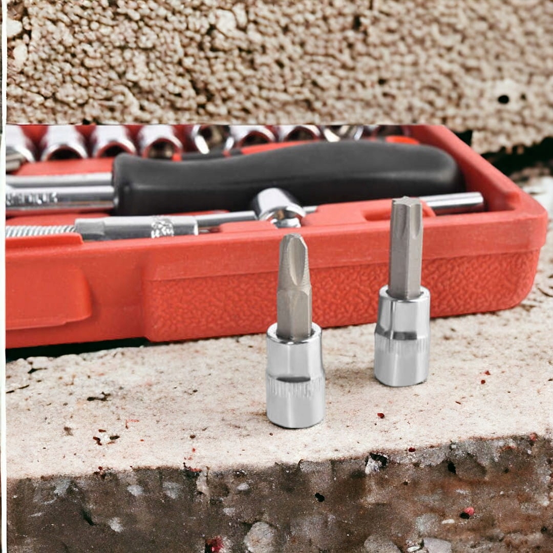 ✅46 предметів багаторазового використання: Набір включає 13 головок, 6 насадок для викрутки TORX, 6 шестигранних насадок для викрутки, 3 насадки для хрестової викрутки, 3 насадки для плоскої викрутки, 3 шестигранні ключі, подовжувачі, тріскачку, ручку для викрутки, поворотну ручку, гнучкий подовжувач, адаптер наконечника, карданний шарнір і корпус.