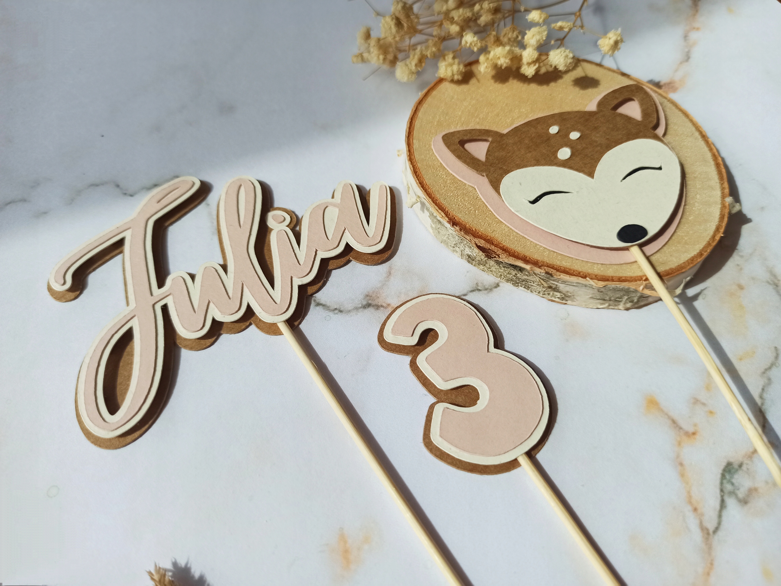 Набір топерів для лісового дня народження - з оленем, цифрою та ім'ям.