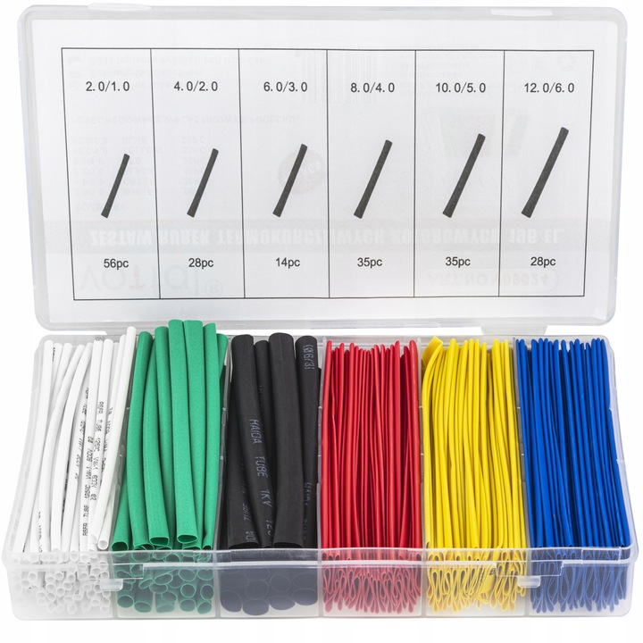 НАБІР ТРУБОК ТЕРМОусадочних трубок ЗАХИСНИХ КАБЕЛІВ 196 ШТ. КОЛЬОРОВИЙ 2-12