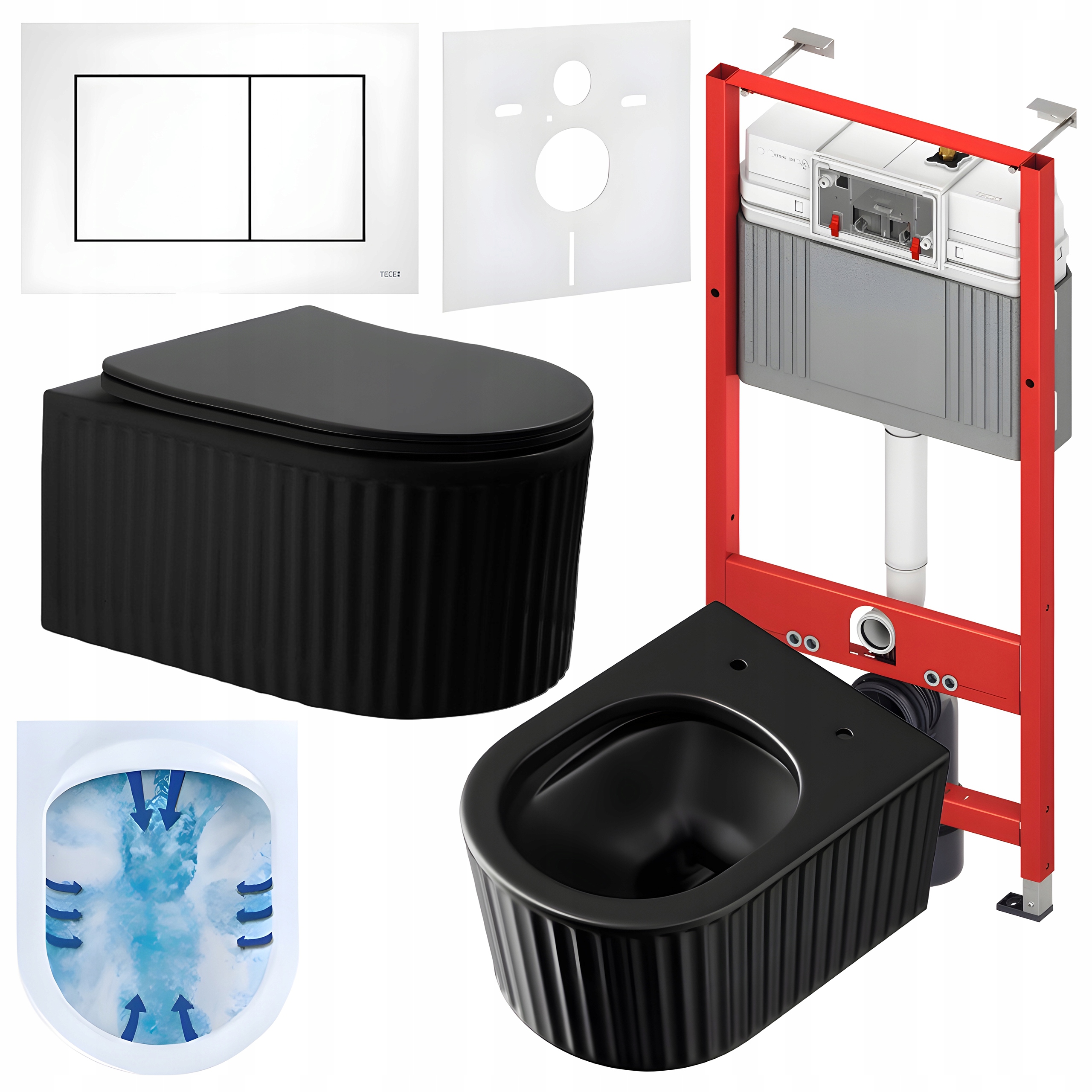 Набір прихованого унітазу TECE з підвісним унітазом Кнопка змиву LUMA-MTB-RIM-03 і TC-9240417 є ідеальним рішенням для людей, які шукають елегантну та функціональну систему ванної кімнати. Ця система характеризується сучасним дизайном, який ідеально вписується в мінімалістичний інтер'єр, забезпечуючи при цьому максимальну економію простору. Вбудована рама дозволяє сховати інсталяційні елементи в стіну, роблячи ванну більш просторою та естетичною. Унітаз LUMA-MTB-RIM-03, виготовлений з високоякісної сантехнічної кераміки, гарантує не тільки елегантний зовнішній вигляд, але й легкість очищення та гігієни, що робить його відмінним вибором для сучасних інтер'єрів.