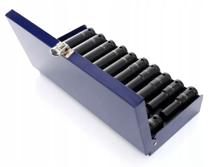 - Містить короткі та довгі шестикутні ударні головки популярних розмірів від 10 до 19 мм.