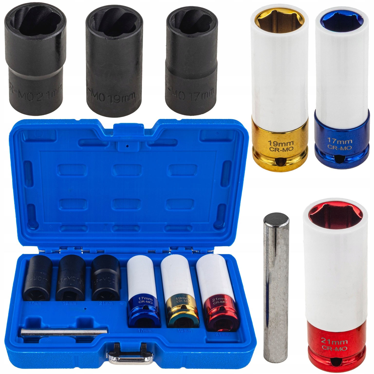 НАБІР ГІЗДІВ УДАРНИХ ДЛЯ АЛЮМІНІЄВИХ КОЛІС 17 19 21 ММ + КЛЮЧІ 1/2" 7 ЕЛЕМЕНТІВ