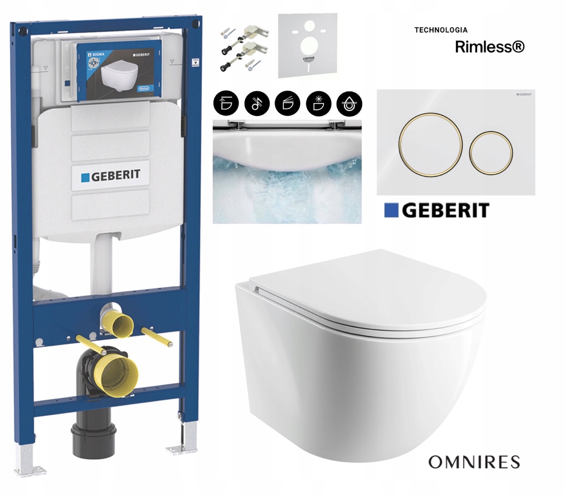 Інноваційна система змиву Omnires Rimless ефективно очищає всю поверхню внутрішньої частини чаші, не розбризкуючи воду.