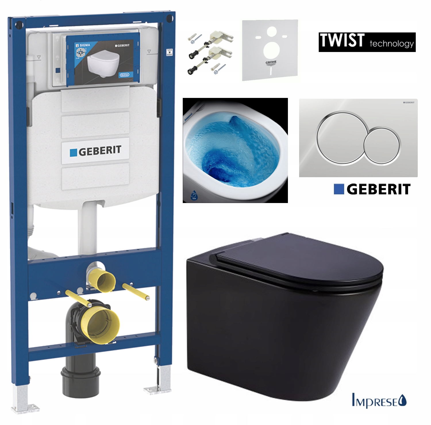Унітаз Imprese JESS black matt, сантехнічна кераміка з технологією TWIST + сидіння Slim soft-closing з дюропласта