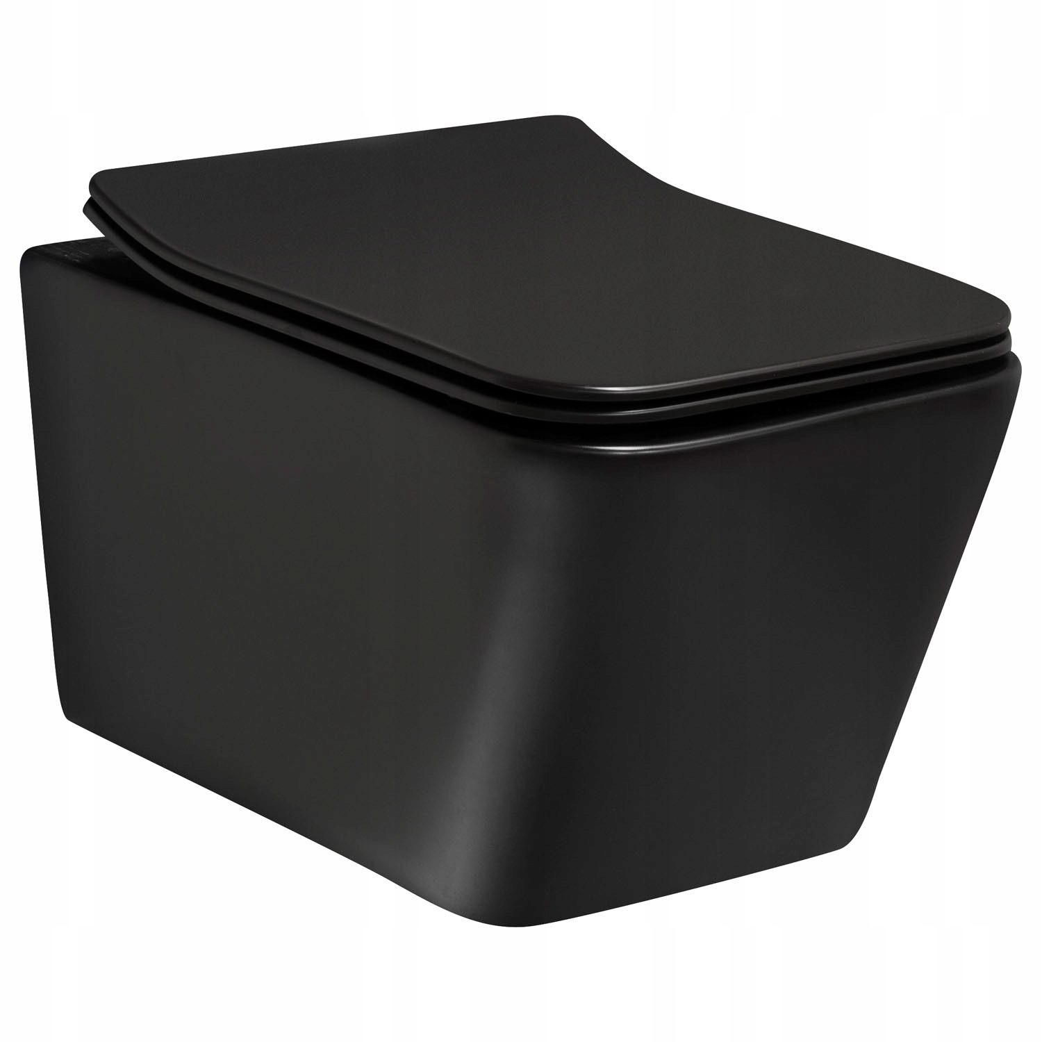 НАБІР УНІТАЗУ БЕЗ ОБІДКА, ЧОРНИЙ МАТОВИЙ, З КНОПКОВОЮ РАМКОЮ