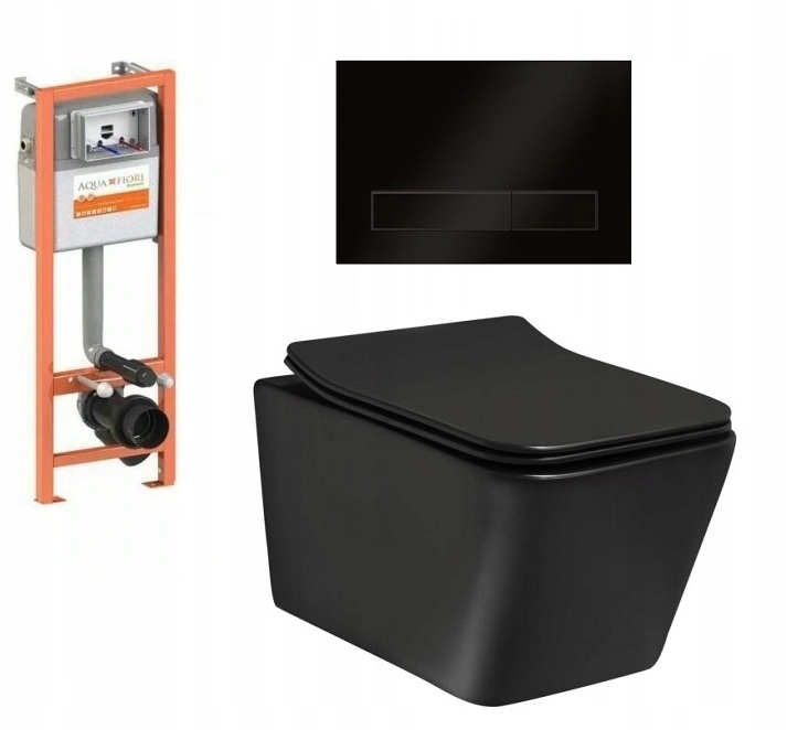 НАБІР УНІТАЗУ, ЧОРНИЙ, РАМА ВПЛІВЛЕНОГО ВСТАНОВЛЕННЯ, КНОПКА