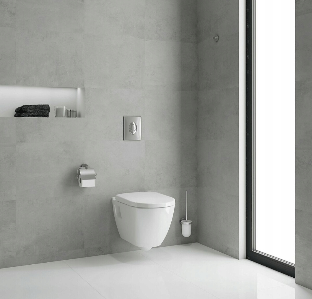 Миска Grohe без оправи пропонується з сидінням із повільним закриттям. Виріб також має функцію водозбереження. Крім миски і дошки в набір також входять необхідні елементи для складання. Всі аксесуари виготовлені з міцних матеріалів