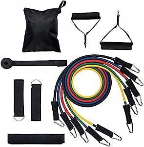 Різні кольорів Регульовані стрічки опору: жовтий, червоний, синій, зелений, чорний. Усі стрічки вправи мають довжину 48 дюймів і можуть бути використані незалежно розташовані в будь -якій комбінації до максимального еквівалента 100 фунтів. використання. Подушки ручки та товсті, підкладені кубики забезпечують оптимальний комфорт та захист під час фізичних вправ. фунта, червоний - 20 фунтів, зелений - 25 фунтів, синій - 30 кілограмів, чорний - 35 фунтів, із загальною вагою опору 125 фунтів. Ви можете скорегувати напругу для досягнення особистих цілей, використовуючи одну групу або поєднуючи багато гуртів, ідеально підходить для початківців або професіоналів, чоловіків, жінок, підлітків або дітей.