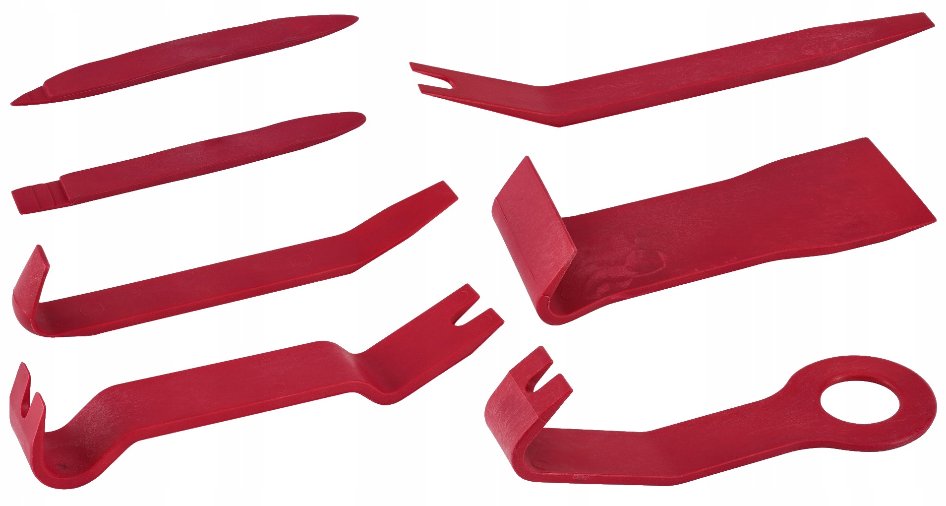 Практичні нейлонові важелі не пошкодять і не подряпають делікатні поверхні, такі як фарба чи салон автомобіля. Інструменти мають різну форму, що робить їх придатними для різних завдань.