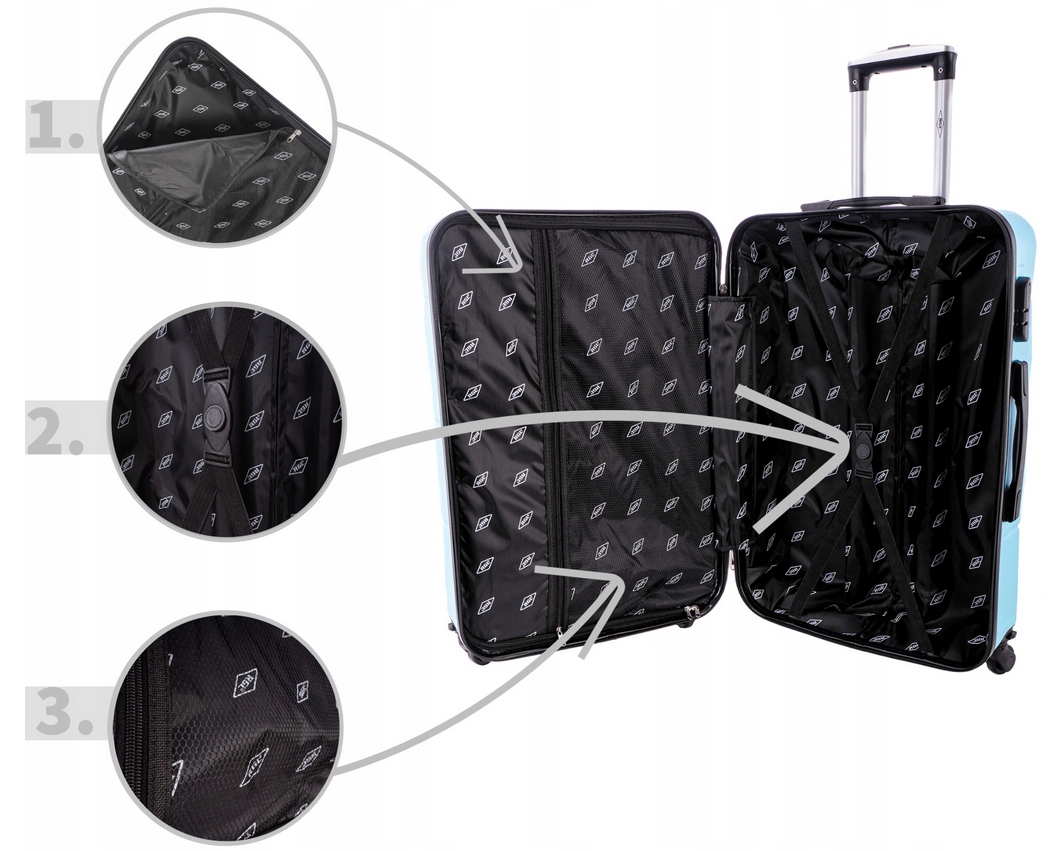 • Еластична стрічка, що запобігає переміщенню багажу всередині відділення валізи
