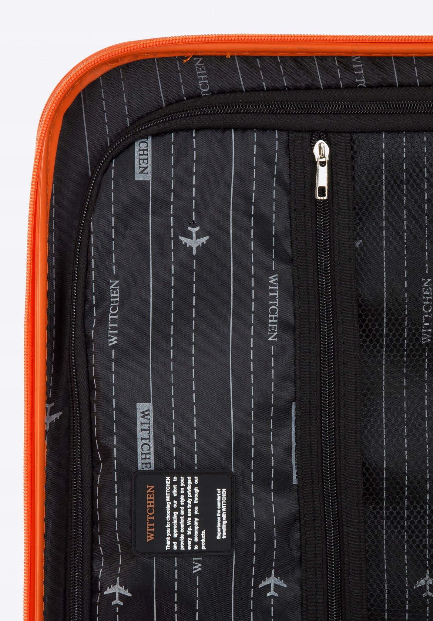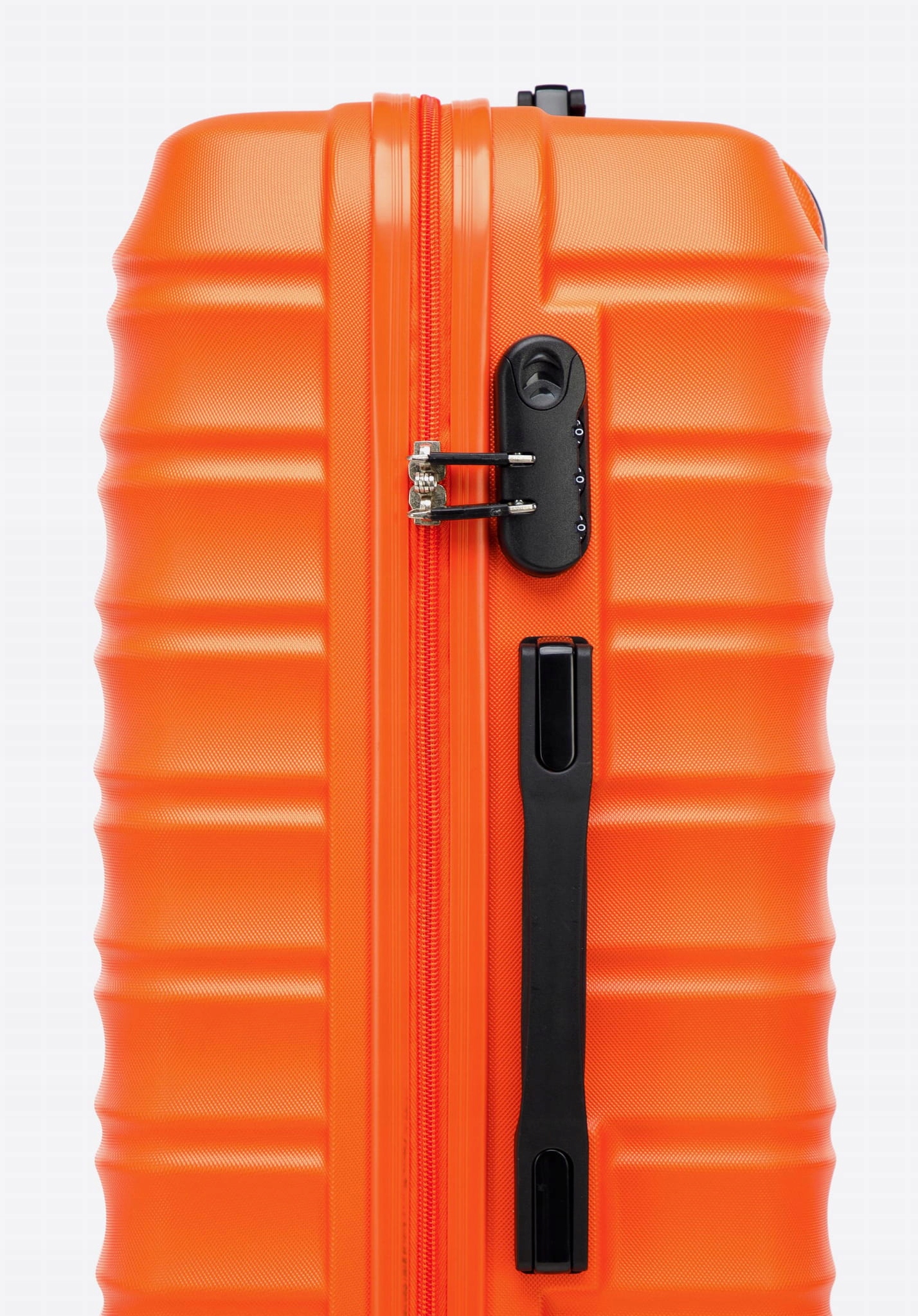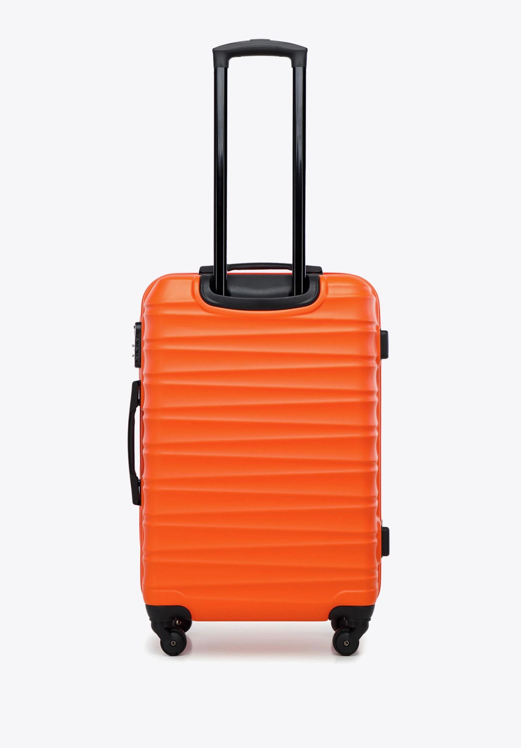 Валіза WITTCHEN 56-3A-31S-55 з колекції GROOVE Line в помаранчевому кольорі виготовлена з дуже міцного матеріалу - ABS, який забезпечує надійний захист речей, що транспортуються, і завдяки до пористої поверхні він ще міцніший до подряпин. Валізи оснащені чотирма колесами на шарикопідшипниках для зручності маневрування, висувною ручкою і 2 гумовими ручками (у маленької валізи ручка тільки вгорі). Додатковою перевагою багажу є безпека у вигляді кодового замка, який запобігає проникненню в салон сторонніх осіб. Всередині валізи мають основне відділення з еластичними ременями для захисту багажу від переміщення, відділення, що закривається на блискавку, і кишеню на блискавці.