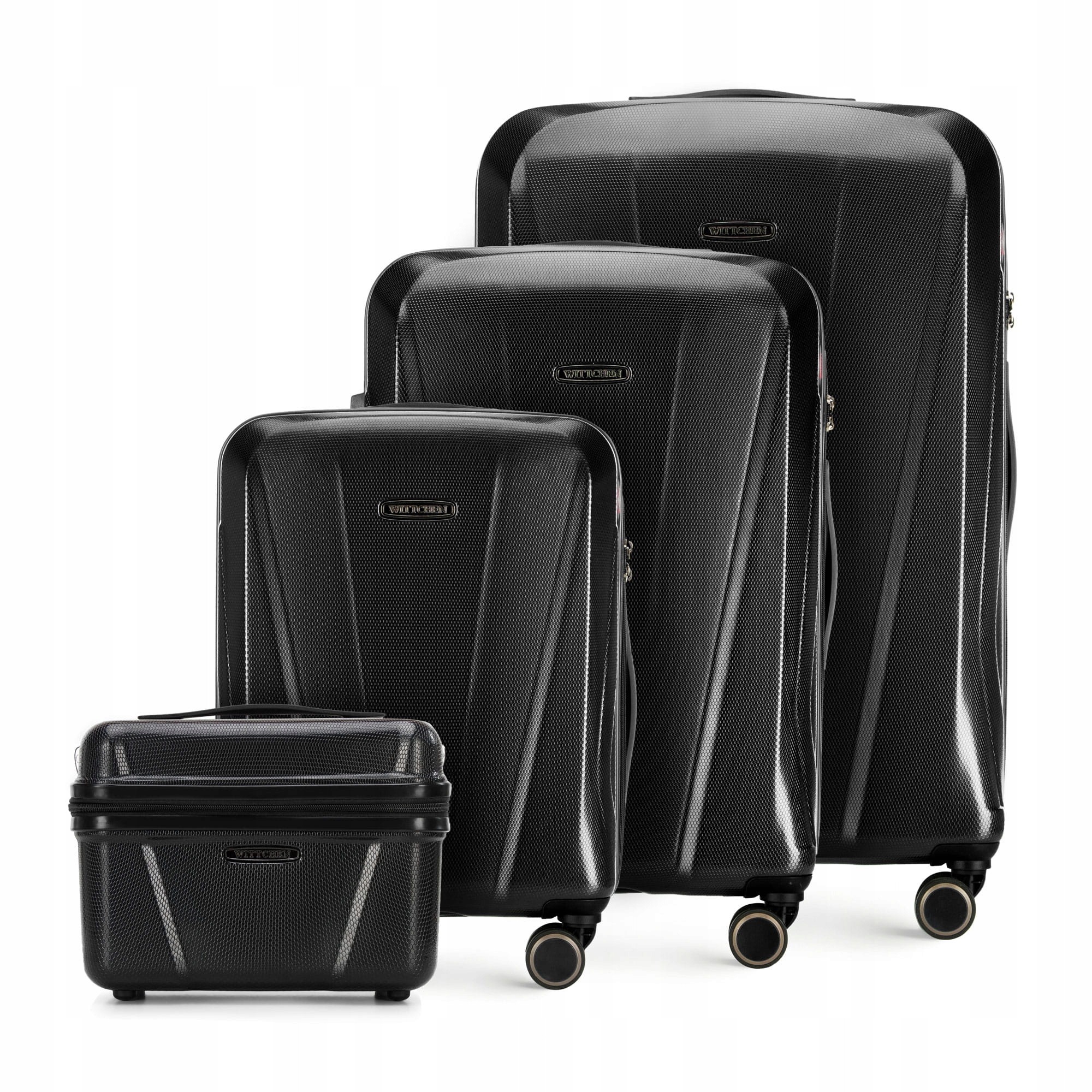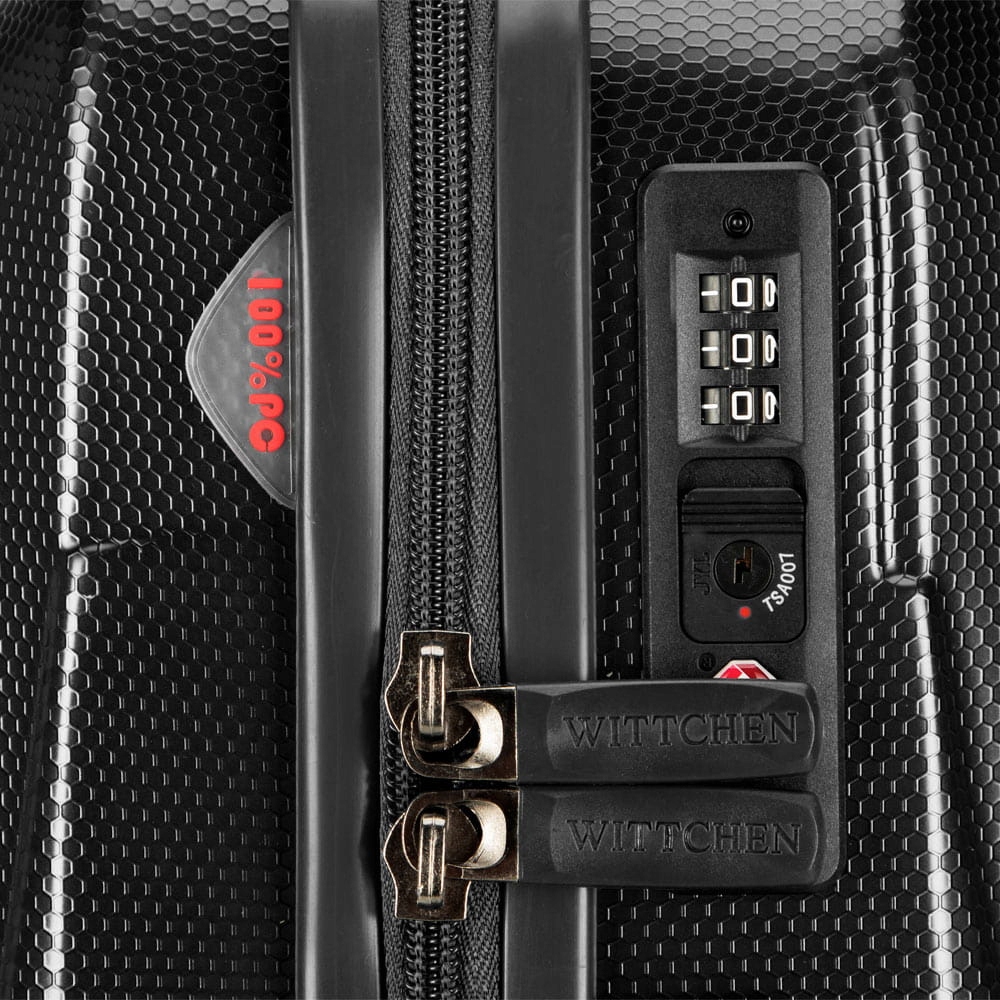 Набір валіз з міцного полікарбонату WITTCHEN. Легкий набір валіз на чотирьох колесах із замком TSA. Чорний набір валіза з косметичкою.