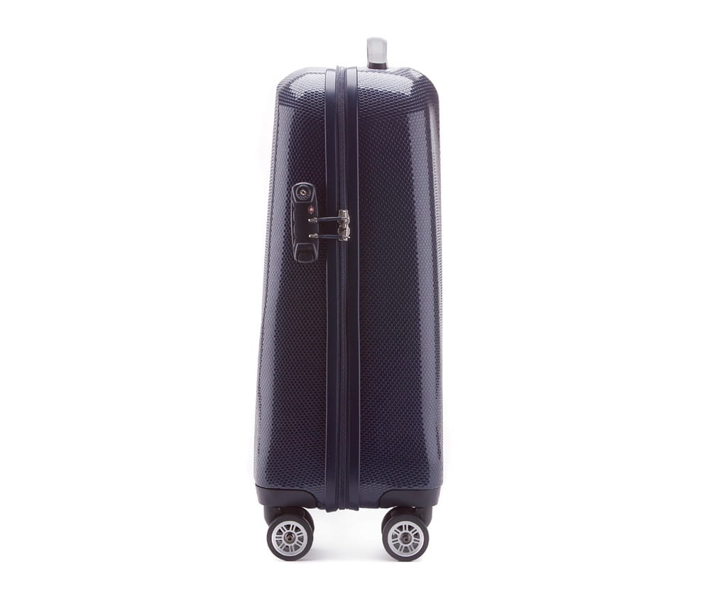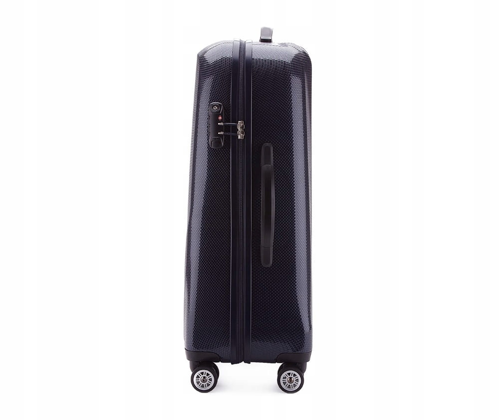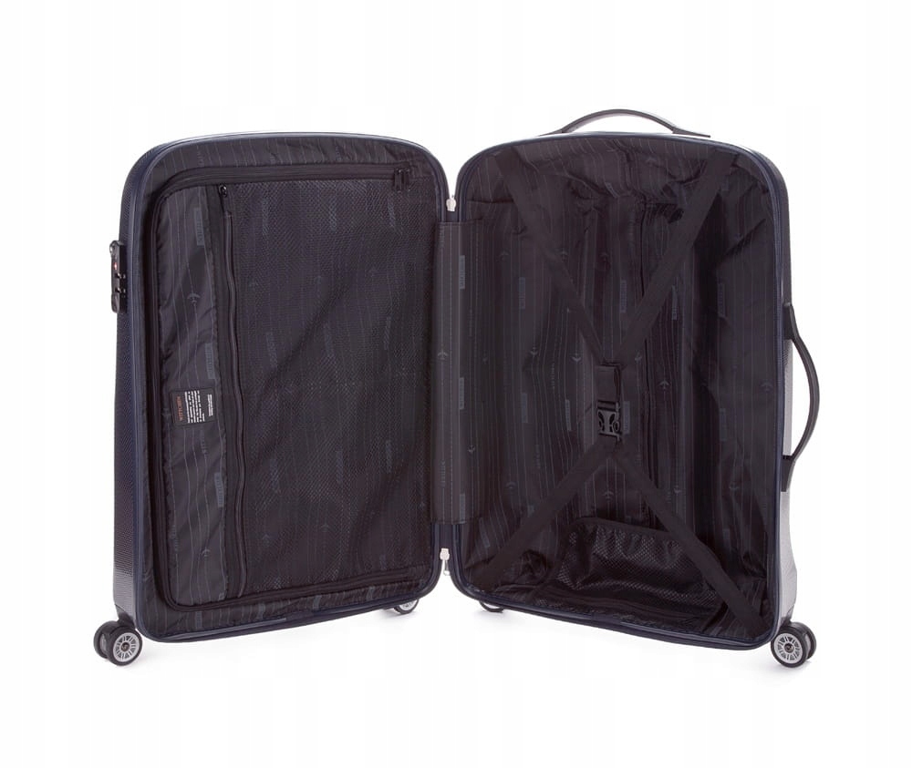 Набір валіз WITTCHEN 56-3P-57K-90 з колекції PC Ultra Light, темно-синій, виготовлений з дуже міцного матеріалу - полікарбонату, покритого спеціальним покриттям, що підвищує стійкість до подряпин. Всі валізи оснащені чотирма колесами з ABS-пластику з термопластичним покриттям, алюмінієвою триступінчастою телескопічною ручкою з замком і 2-ма гумовими гнучкими ручками для рук (у маленької валізи тільки верхня ручка). Безпека у вигляді кодового замка TSA запобігає проникненню сторонніх осіб усередину та, у разі перевірки багажу митницею, забезпечує неінвазивне відкриття валізи та її повторне закриття, не пошкоджуючи замок. Всередині валіз є відділення з ременями для захисту багажу від переміщення, відділення закривається на блискавку і 2 сітчасті кишені на блискавці.