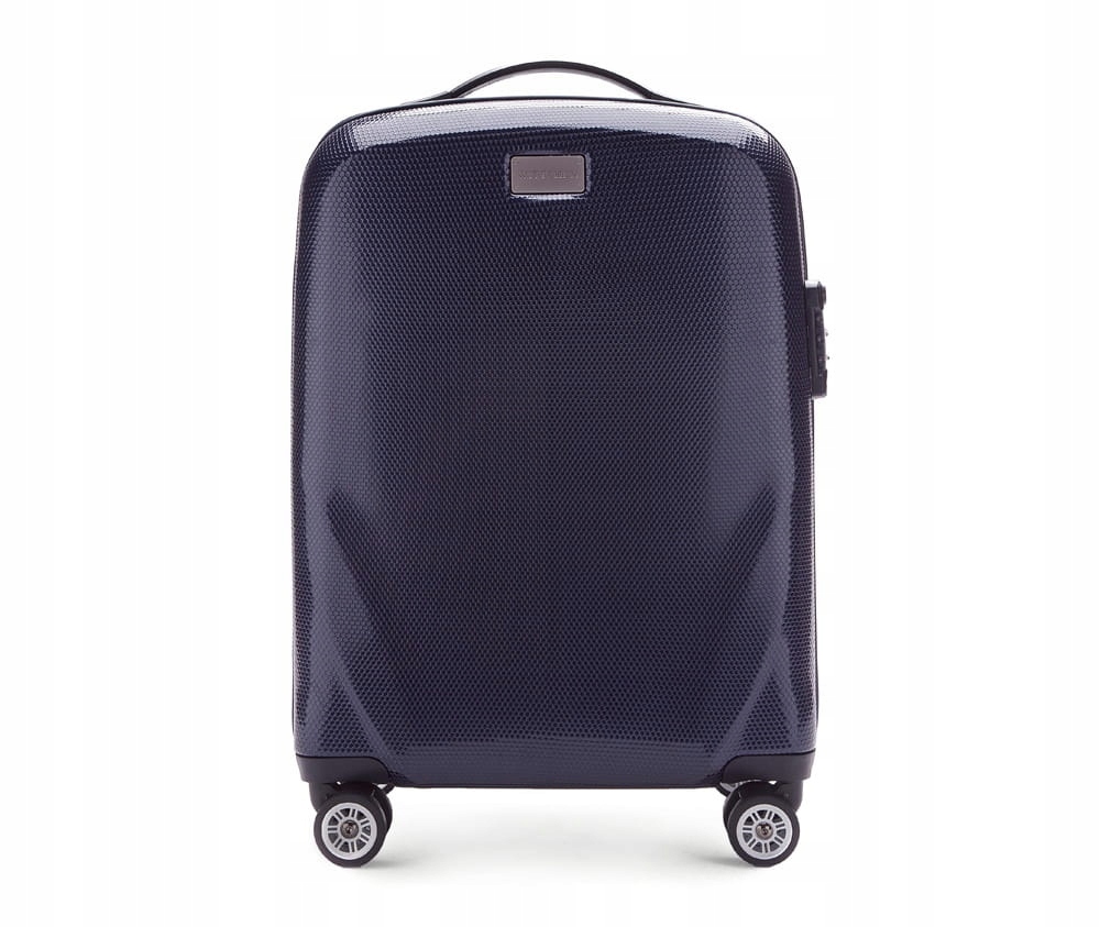 Практичний, міцний, місткий, сучасний комплект валіз WITTCHEN 56-3P-57K-90 з полікарбонату, з косметичкою, легкий, на чотирьох колесах, з кодовим замком TSA, для відпочинку, для дальшої подорожі, функціональний, стійкий до подряпин, стильний, елегантний, зручний, темно-синій.