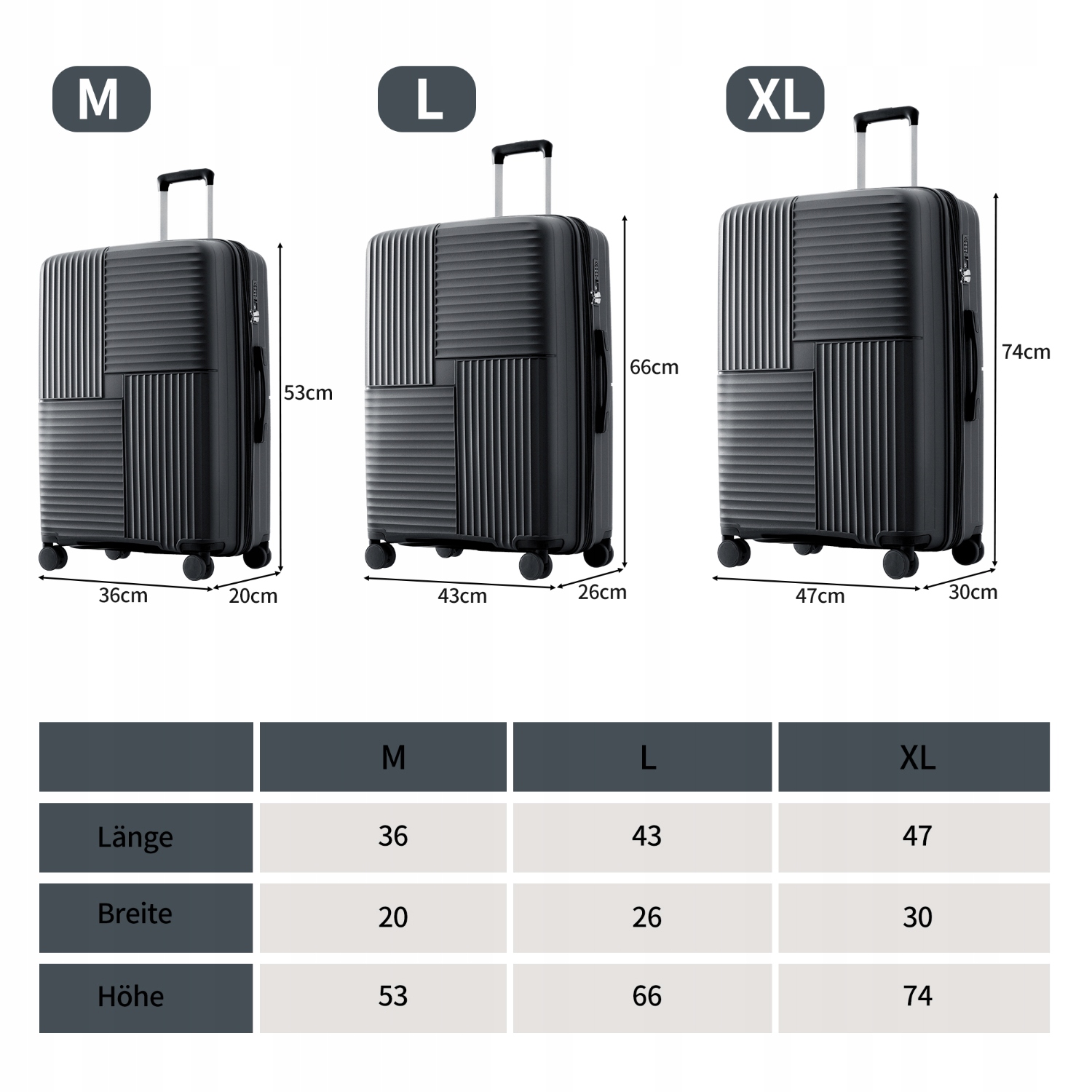 Наш багажний набір характеризується вдосконаленою конструкцією подвійних коліс, які легко рухаються в будь -якому напрямку. Попрощайтеся з проблемами, пов’язаними з важким багажем. Конструкція з поворотом 360 ° полегшує переміщення аеропортів та вулиць. Подорож повинно бути неприємно -з моменту виходу з дому, і наші подвійні колеса це дозволяють. 2. Міцний матеріал PP: створений для виживання - виготовлене з довговічного ПП!