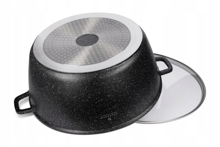 Мармурове покриття не реагує з їжею, дозволяє готувати страви з невеликою кількістю жиру, що гарантує найвищу якість їжі, і індукція дно швидко і рівномірно розподіляє тепло.