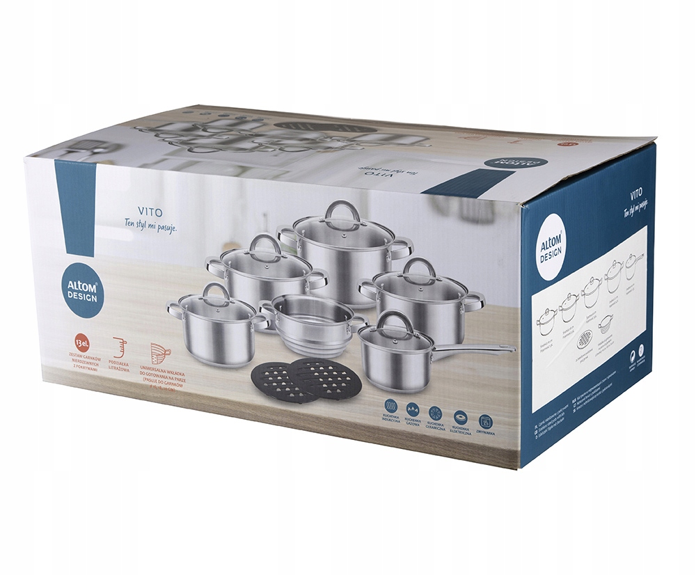 Набір великих каструль, індукції, кришки Altom Design Vito 13 шт