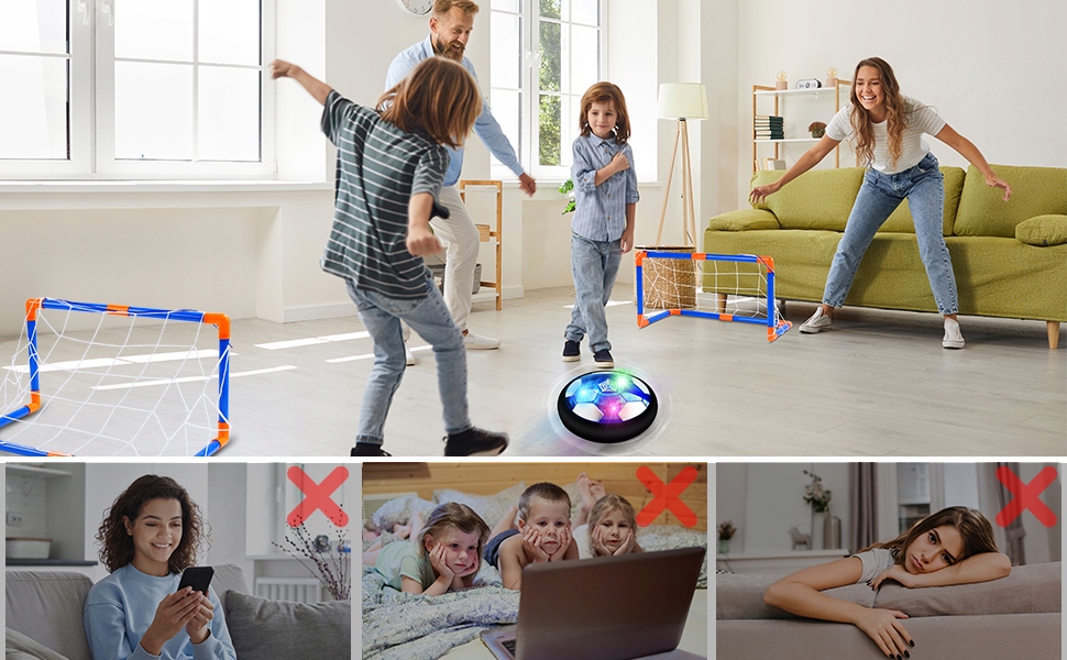 чудовий вибір для сімейних або дитячих ігор. Перезаряджуваний футбольний м’яч підходить для гри в різних приміщеннях, а надувний футбольний м’яч підходить для гри на вулиці. Вашим дітям більше не потрібно турбуватися про розваги, вони можуть грати у футбол один з одним, домашніми тваринами, друзями та членами родини в будь-який час і в будь-якому місці, щоб зміцнити дружбу та покращити стосунки між батьками та дітьми.